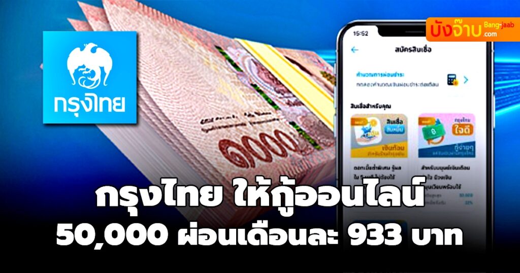 วันนี้ Bang jaab.com จะมาแนะนำบริการ สินเชื่อเงินกู้ เงินกู้ด่วน อุนมัติง่าย จาก ธนาคารกรุงไทย สำหรับ สินเชื่อ Smart Money ให้วงเงินกู้ยืม ได้ตั้งแต่ 10,000 – 1 ล้าน หรือ สูงสุด 5 เท่าของรายได้ ไม่มีบัญชีกับธนาคารกรุงไทยก็กู้ได้ ไม่ต้องมีหลักทรัพย์ ไม่ต้องใช้บุลคลค้ำประกัน สมัครง่ายผ่านแอป Krungthai NEXT