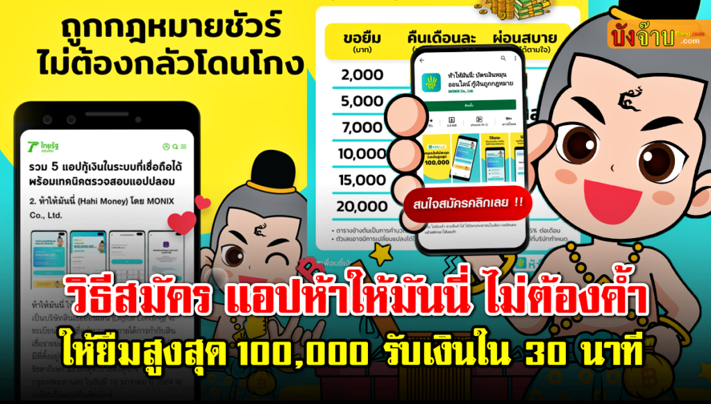 วิธีสมัครแอปห้าให้มันนี่ ยืมสูงสุด 100,000 ไม่ต้องค้ำ รับเงินใน 30 นาที
