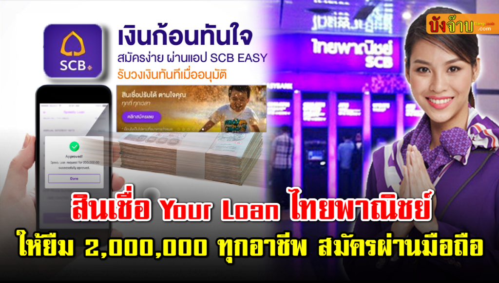 วันนี้ทาง Bang jaab.com มีบริการ สินเชื่อเงินกู้ยืม ที่น่าสนใจมาแนะนำกัน สำหรับ สินเชื่อส่วนบุคคล Your Loan จากทาง ธนาคาร ไทยพาณิชย์ สินเชื่อที่มีวงเงินกู้ยืม ตั้งแต่ 5,000 – 2,000,000 บาท โดยไม่ต้องมีทรัพย์สิน หรือบุคคลค้ำประกัน และยังสามารถสมัครได้ง่ายๆผ่านทางแอปมือถือ ตอบโจทย์ทุกความต้องการ