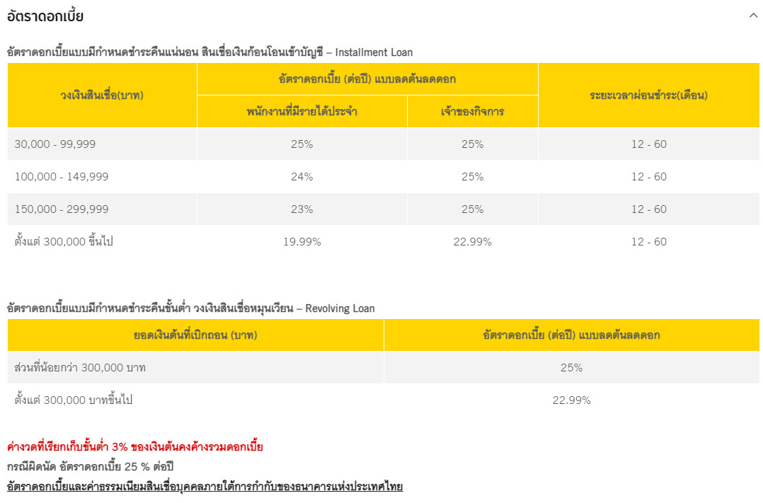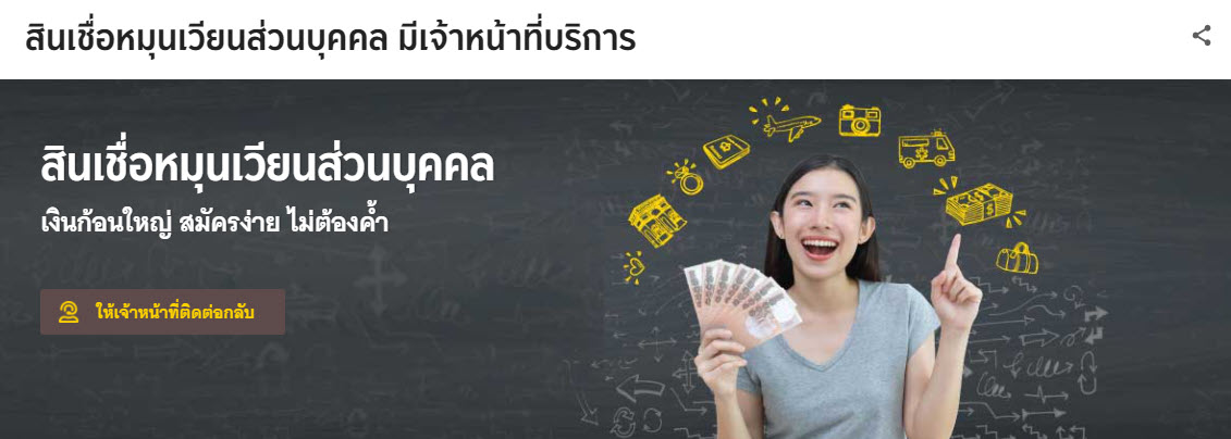 ข้อมูลเพิ่มเติม สินเชื่อหมุนเวียนส่วนบุคคล กรุงศรี คลิกที่นี่