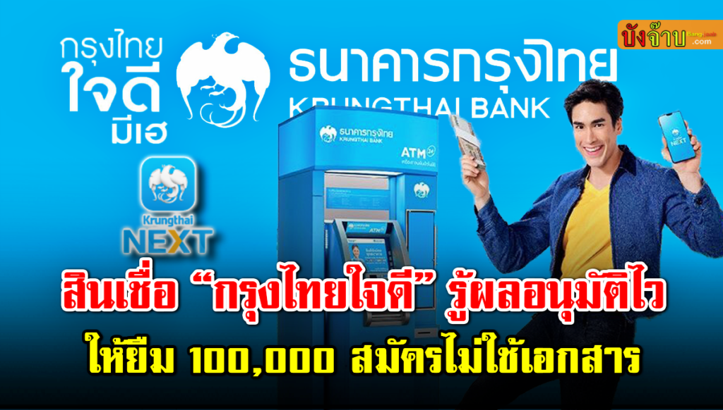 สินเชื่อกรุงไทยใจดี เป็นบริการ สินเชื่อเงินกู้ยืม ตัวใหม่จากทาง ธนาคาร กรุงไทย ที่เปิดโอกาศให้ผู้คนสามารถเข้าบริการ สินเชื่อเงินกู้ยืม ได้ง่ายขึ้น เพราะสามารถ ยื่น กู้ยืมเงิน ผ่านทางแอปมือถือ Krungthai NEXT ไม่จำเป็นต้องมีหลักทรัพย์ หรือ บุคคลค้ำประกัน พร้อมทั้งวงเงินกู้ยืมที่สูง