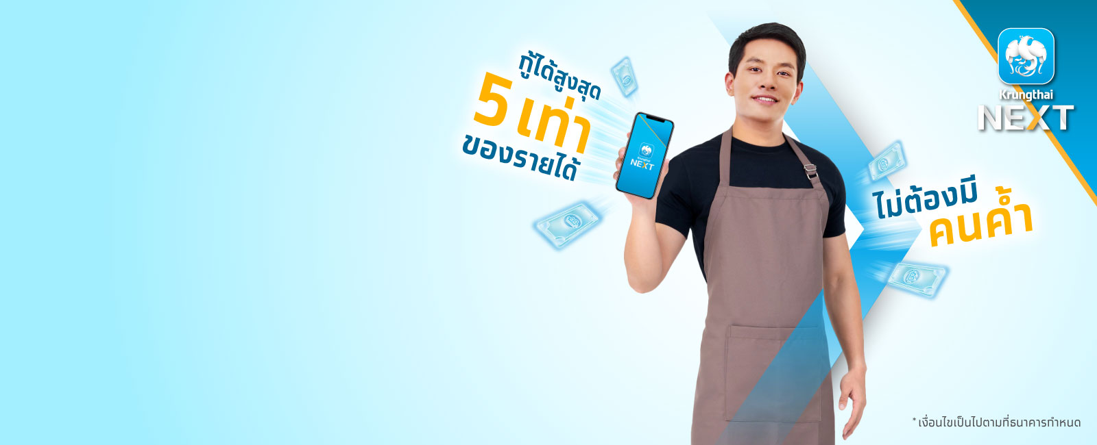 นอกจากนี้ยังมีจุดเด่น สมัครง่ายผ่านแอป Krungthai NEXT โดยไม่ต้องใช้หลักทรัพย์หรือบุลคลในการค้ำกัน ไม่ต้องไปถึงธนาคาร ไม่มีบัญชีกับธนาคารกรุงไทยก็กู้ได้ สนใจสมัครสินเชื่อดูรายละเอียดด้านล่างได้เลย