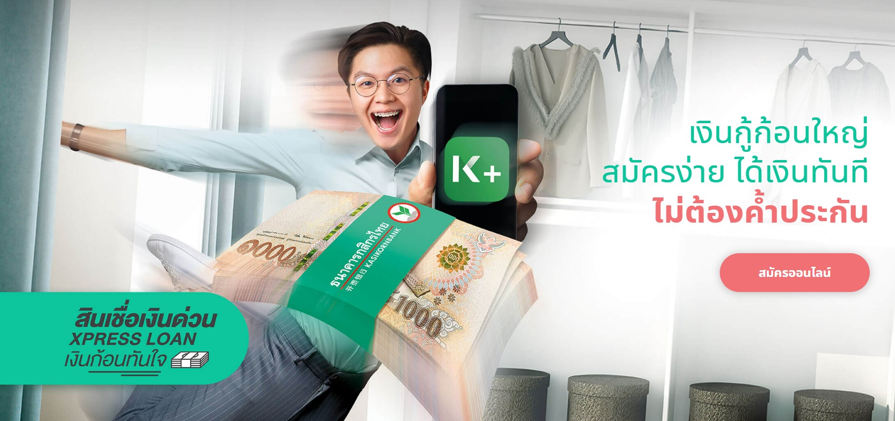 สินเชื่อเงินด่วน Xpress Loan เป็นสินเชื่อ ที่เปิดโอกาศให้กับทุกอาชีพ สามารถกู้ยืมเงินได้ง่าย ผ่านแอป K PLUS เพื่อนำเงินไปหมุดได้ ไม่ว่าจะเป็น ปิดหนี้บัตรเครดิตหรือเพิ่มสภาพคล่องทางการเงิน หรือจะนำมาเพื่อใช้จ่ายในชีวิตประจำก็ได้