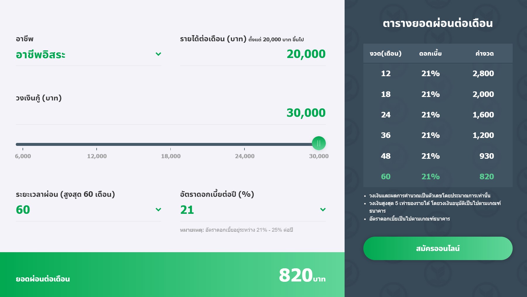 -กู้ยืมเงิน เริ่มต้น 6,000 บาท สูงสุด 5 เท่าของรายได้ ไม่เกิน 1.5 ล้านบาท
