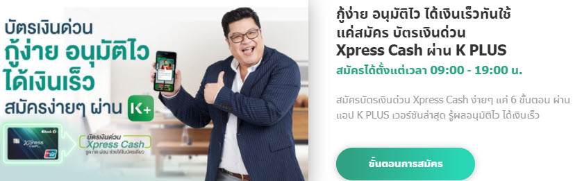 สินเชื่อบัตรเงินด่วน Xpress Cash กสิกรไทย เป็นสินเชื่อบัตรกดเงินสด รูปแบบหมุนเวียน ที่เหมาะเอาไว้ใช้เป็นวงเงินสำรอง ใช้จ่ายในชีวิตประจำวัน โดยให้วงเงินสูงสุด 5 เท่าของรายได้ หรือกู้ยืมเงินได้ไม่เกิน 1.5 ล้านบาท ยื่นลงทะเบียนกู้ได้ง่ายทุกอาชีพ
