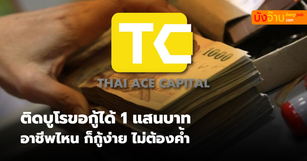 ติดบูโรขอสินเชื่อที่ไหนได้บ้าง? วันนี้ Bang-jaab.com ขอแนะนำ สินเชื่อบุลคล ไทยเอซแคปปิตอล ให้วงเงิน กู้เงิน สูงถึง100,000 บาท แม้มีปัญหาบูโร แบล็คลิสต์ ก็สามารถสมัครยื่น กู้เงิน ได้ ไม่ต้องมีหลักทรัพย์ ไม่ใช้คนค้ำประกัน
