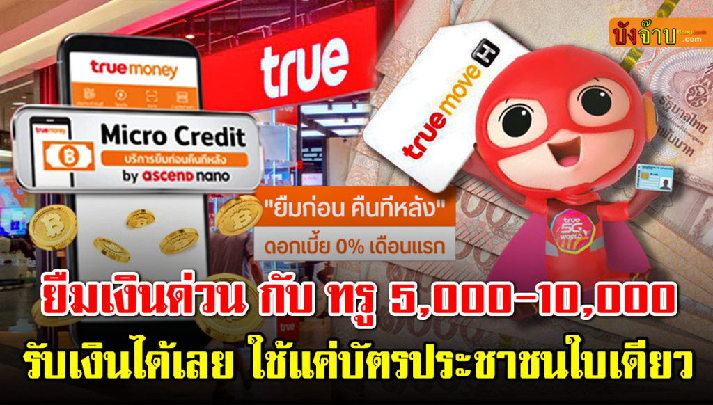 ข่าวดี สำหรับ ลูกค้า ทรูมันนี่ อัพเดทล่าสุด ขยายเวลาแล้ว กับ สินเชื่อเงินให้กู้ยืม ทรู Micro Credit สินเชื่อส่วนบุคคล ที่ได้ร่วมมือกับบริษัท แอสเซนด์ นาโน จำกัด จัดทำมาเพื่อช่วยเหลือกลุ่มประชาชนที่เป็นลูกค้าทรูมูฟ เอช ระบบรายเดือน ที่มาพร้อมปลอดดอกเบี้ย 0% เดือนแรก วงเงินกู้ยืม สูงสุด 10,000 บาท เบิกเงินสดใช้ได้ผ่าน แอป ทรูมันนี่ วอลเล็ท