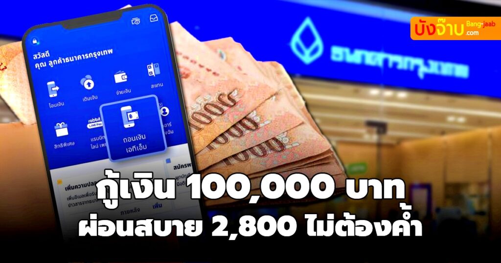 ธนาคารกรุงเทพ ให้ยืมหนัก 100,000 ผ่อนเบา 2,800 สุขใจ ไม่ต้องค้ำ