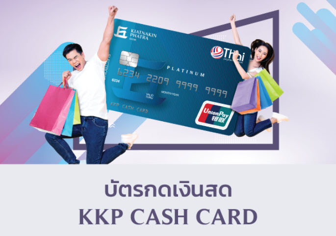 บัตรกดเงินสด KKP cash card เป็นบริการสินเชื่อเงินด่วน ที่มีวงเงินกู้ยืมพร้อมใช้ สูงสุดที่ 250,000 บาท เพื่อค่าใช้จ่ายต่างๆ ตามที่ต้องการ โดยสามารถกดเงินสดใช้ได้ทันใจ สูงสุดถึง 100,000 บาทต่อวัน ผ่านตู้ ATM ตลอด 24 ชั่วโมง โดยไม่เสียค่าธรรมเนียมใดๆ