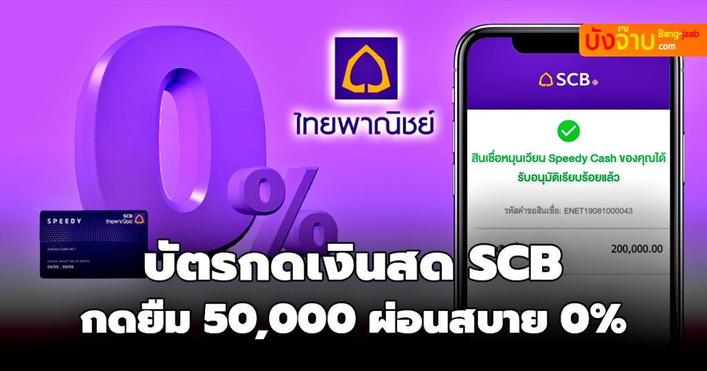 วันนี้ Bang jaab.com จะมาแนะนำ สินเชื่อเงินกู้ สินเชื่อเงินกู้อนุมัติไว เงินกู้ถูกกฏหมาย จาก ธนาคารไทยพาณิชย์ สำหรับ สินเชื่อบัตรกดเงินสด Speedy Cash มีวงเงินกู้ยืม ไม่เกิน 5.0 เท่าของรายได้ เงินกู้ขั้นต่ำ 10,000 บาท หรือสูงสุดไม่เกิน 1,500,000 บาท ไม่ต้องมีหลักทรัพย์หรือบุคคลค้ำประกัน