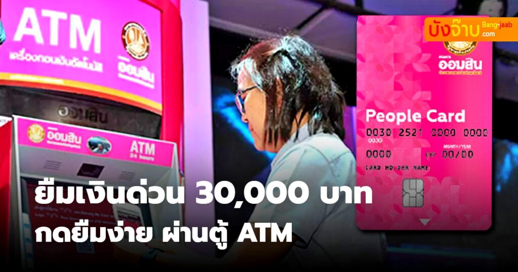 บัตรกดเงินสด PEOPLE CARD เป็น สินเชื่อเงินกู้เอนกประสงค์ จาก ธนาคารออมสิน ที่มีวงเงินสำรองพร้อมใช้ เพื่อใช้จ่ายวงเงินสูงสุด 30,000 บาท โดยไม่ต้องมีหลักทรัพย์หรือบุคคล ค้ำประกัน คำนวณดอกเบี้ยตามจำนวนเงินและจำนวนวันที่เบิกใช้จริง