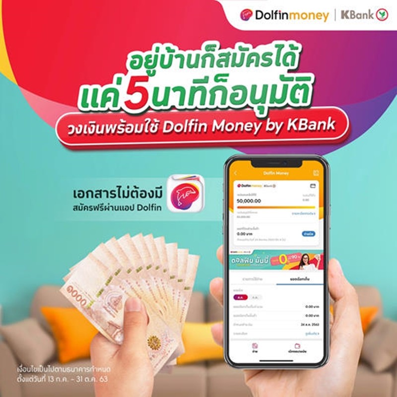 ข้อมูลเพิ่มเติม สินเชื่อเงินกู้ยืม Dolfin Money By KBank คลิกที่นี่