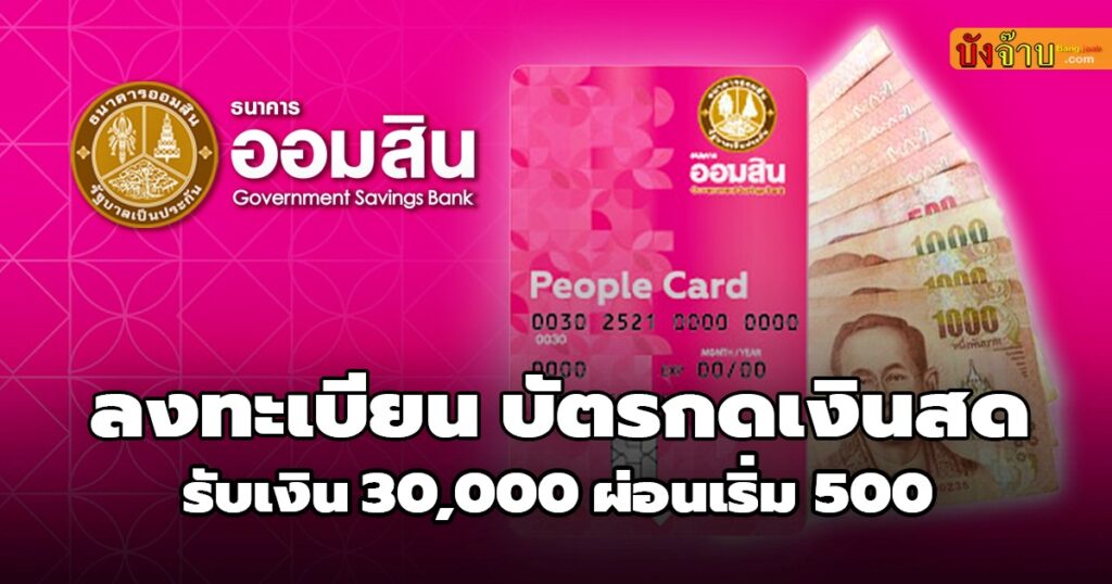 วันนี้ Bang jaab.com จะมาแนะนำบริการสินชื่อเงินกู้ด่วน บัตรกดเงินสด PEOPLE CARD จาก ธนาคารออมสิน มีวงเงินกู้ 30,000 บาท ไม่ต้องมีหลักทรัพย์หรือบุคคลค้ำประกัน ถอนเงินจาก ATM ได้ตลอด 24 ชั่วโมง สะดวก รวดเร็ว