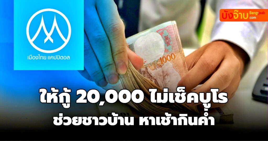 วันนี้ Bang jaab.com จะขอแนะนำ สินเชื่อเงินกู้ เงินกู้ไม่เช็กบูโร เงินกู้ด่วนถูกหมาย สำหรับ สินเชื่อส่วนบุลคล เมืองไทยแคปปิตอล ให้วงเงินกู้ยืม สูงสุดที่ 20,000 บาท ไม่ต้องใช้คนค้ำประกัน อนุมัติเงินทันใจใน 1 วัน