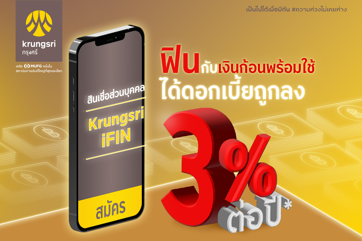 ยืมเงิน iFIN สินเชื่อกรุงศรี 40,000 ผ่อนชิล ไม่ต้องค้ำ อนุมัติไว
