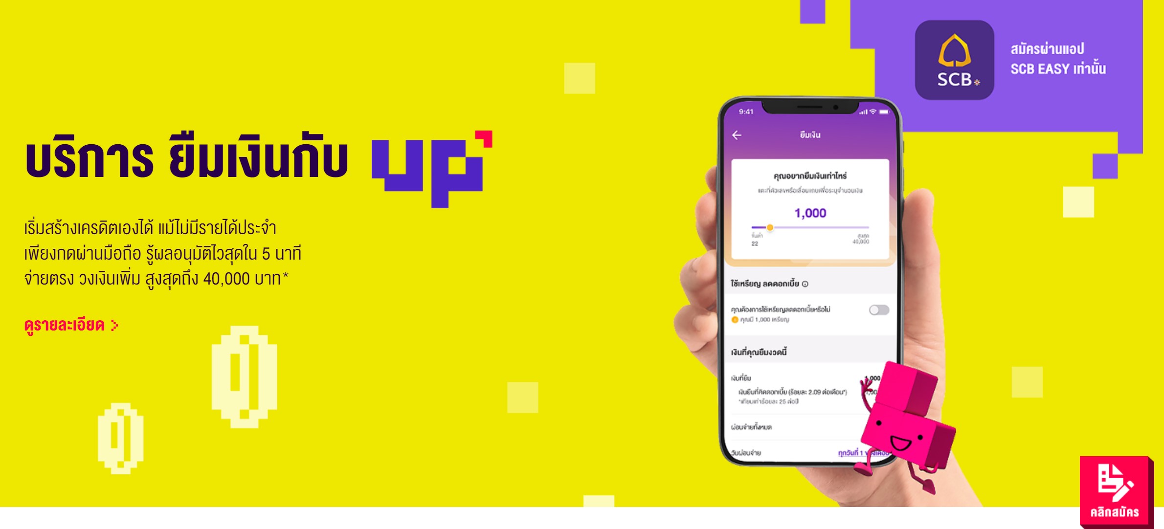 “ยืมเงิน UP” ไทยพาณิชย์ เริ่ม 1,000 บาท ไม่เช็ค ไม่ใช้เอกสาร