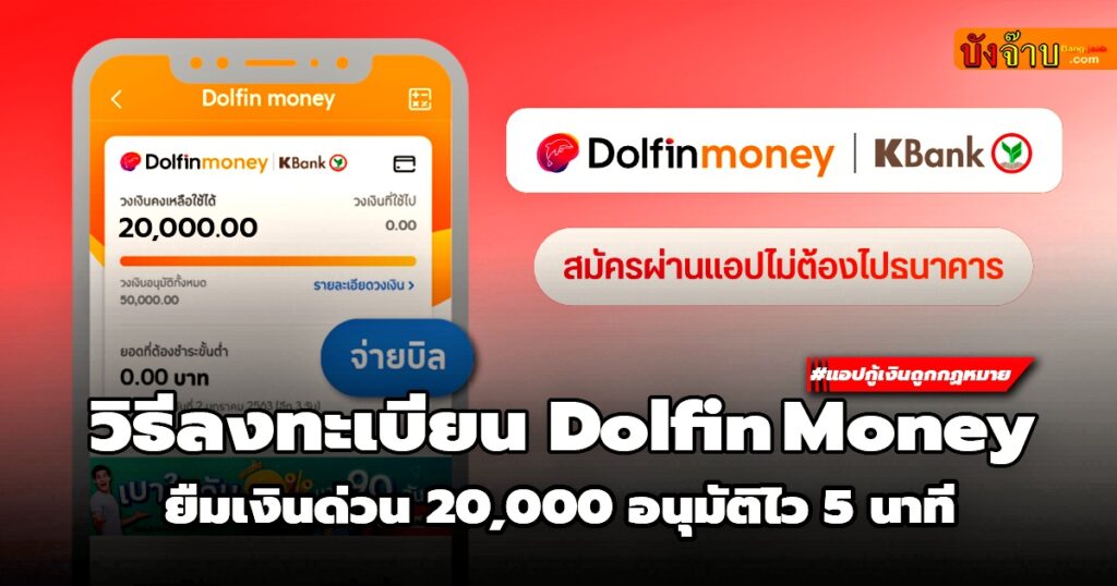 ใครที่กำลังมองหา แอปกู้ยืมเงิน ถูกกฏหมาย สมัครง่าย อนุมัติไว วันนี้ Bang jaab.com จะขอแนะนำ แอป ดอลฟิน มันนี่ (Dolfin Money)แอปกู้เงินถูกกฎหมาย มีวงเงินกู้สูงสุดไม่เกิน 1.5 ล้านบาท จะกู้ยืมเงินเพื่อใช้จ่าย 5,000 – 20,000 บาทก็สามารถกู้ได้ง่ายๆ