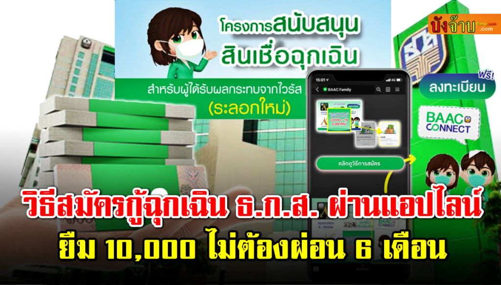 วันนี้ทาง Bang jaab.com มีข่าวดีมาบอก สำหรับ ผู้ที่ได้รับผลกระทบจากสถานการณ์การแพร่ระบาดของไวรัส โควิด 19 ระลอกใหม่ และกำลังต้องการหาบริการ สินเชื่อเงินให้กู้ยืม เพื่อนำมาใช้จ่ายในยามฉุกเฉินเช่นนี้ โดยทาง ธนาคารเพื่อการเกษตรและสหกรณ์การเกษตร (ธ.ก.ส.) ขยายเวลาเปิดรับคำขอสินเชื่อฉุกเฉินให้ กู้ยืมเงิน ได้รายละไม่เกิน 10,000 บาท ไม่ต้องใช้หลักประกัน ปลอดหนี้เงินต้น 6 เดือน