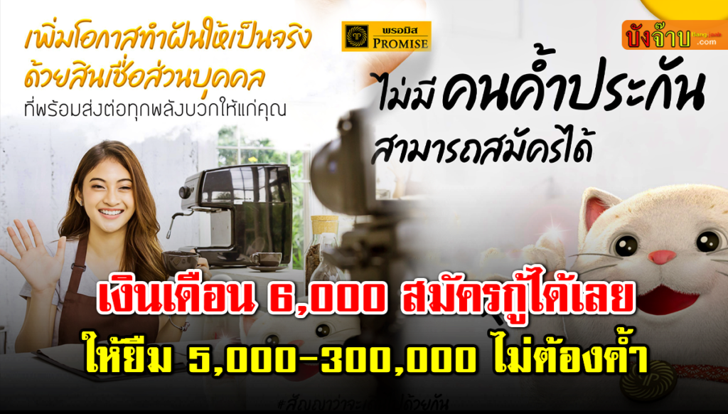 วันนี้ทาง Bang jaab.com มีบริการ สินเชื่อเงินให้กู้ยืม ที่น่าสนใจ จากทาง บริษัท พรอมิส (ประเทศไทย) จำกัด กับบริการ “สินเชื่อบุคคลพรอมิส” ที่มีวงเงินกู้ยืมสูงสุดถึง 300,000 บาท และไม่ต้องใช้หลักทรัพย์หรือบุคคลค้ำประกันใดๆ หมดปัญหาเรื่องต้องหาบุคคลค้ำประกันหรือหลักทรัพย์ค้ำประกันสำหรับการขอสินเชื่อกู้ยืมเงิน