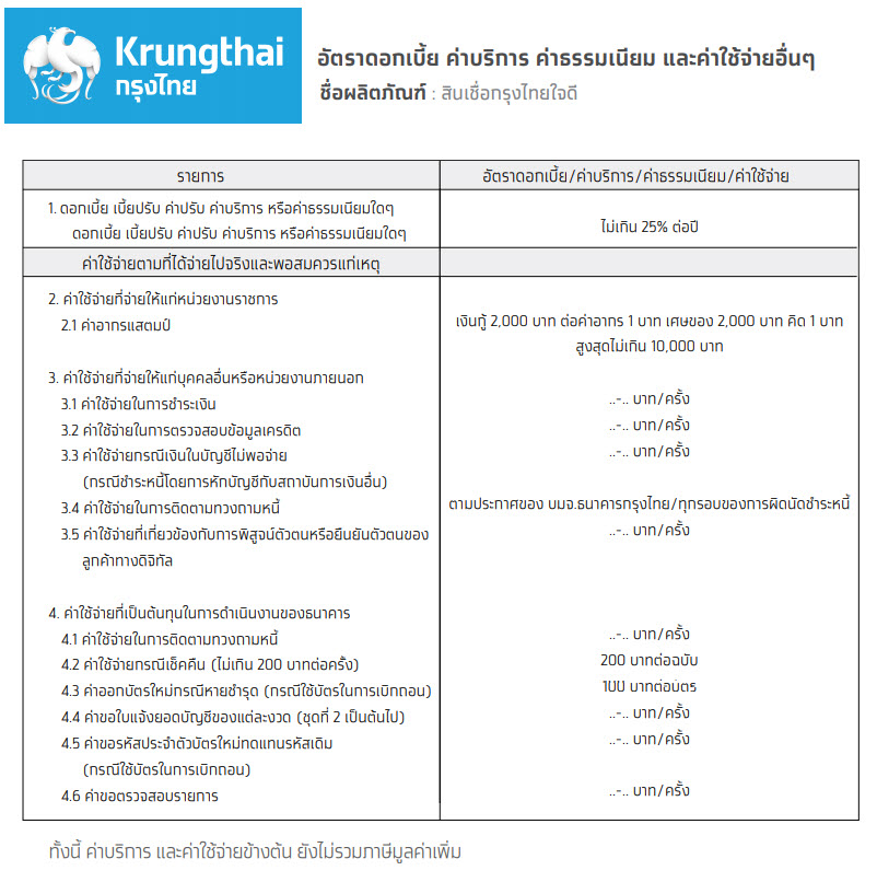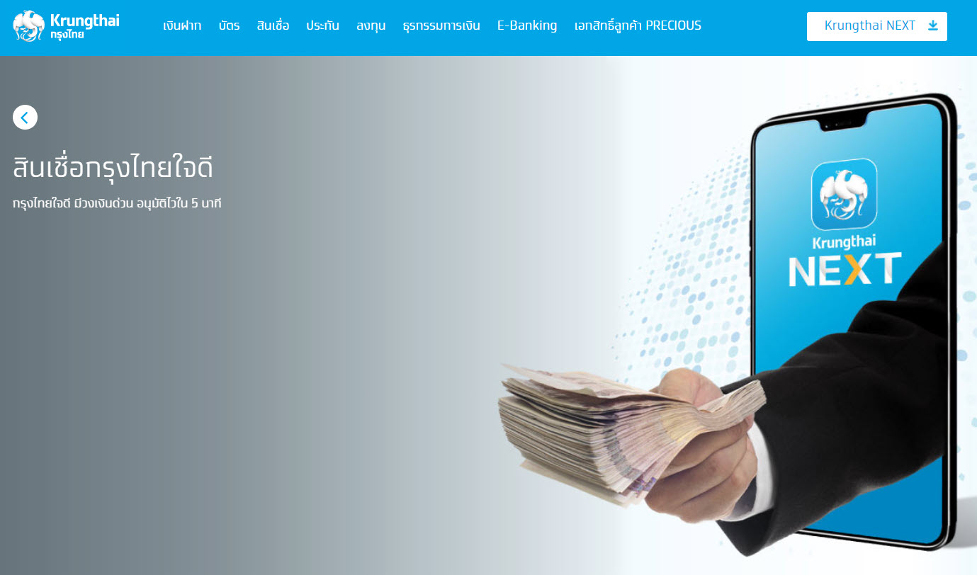 ข้อมูลเพิ่มเติมสมัคร สินเชื่อกรุงไทยใจดี คลิกที่นี่
