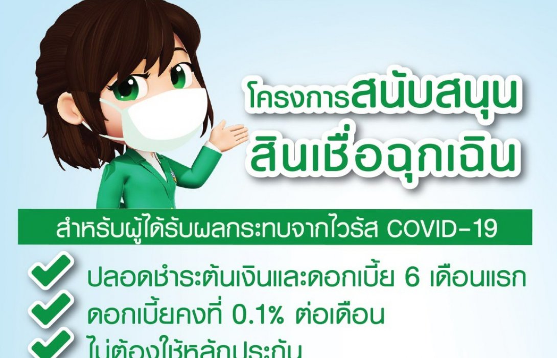 ธนาคารเพื่อการเกษตรและสหกรณ์การเกษตร หรือ ธ.ก.ส. เปิดสินเชื่อสินเชื่อสู้ภัยโควิด 19 ใครท่านที่กำลังเดือดร้อนขาดเงินหมุดเวียนในเวลานี้ เพื่อให้ท่านได้มีเงินมาเพิ่มสภาพคล่องทางการเงินในเวลานี้ โดยมีวงเงินรวม 10,000 ล้านบาท มีผู้ที่ได้รับอนุมัติสินเชื่อแล้วกว่า 8,911 ล้านบาท ช่วยเหลือลูกค้าเกษตรกรกว่า 894,521 ราย ทำให้เวลานี้ ทำให้เหลือวงเงินกู้อีกไม่เกิน 1,100 ล้านบาท