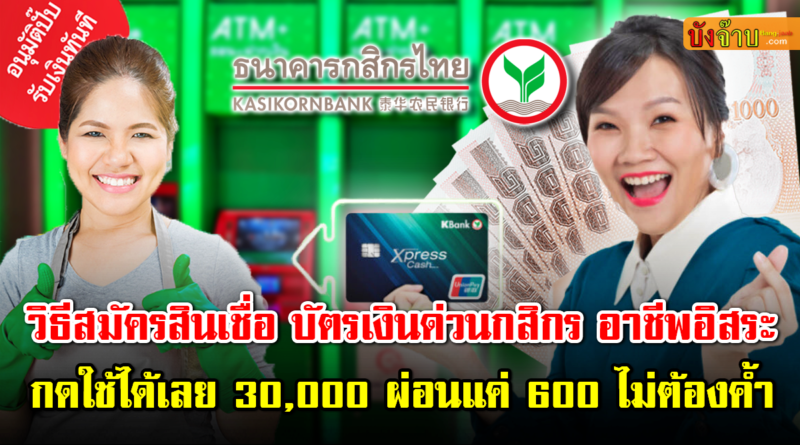 วิธีสมัครสินเชื่อ อาชีพอิสระ บัตรเงินด่วนกสิกร กดใช้ได้ 30,000 ผ่อน 600