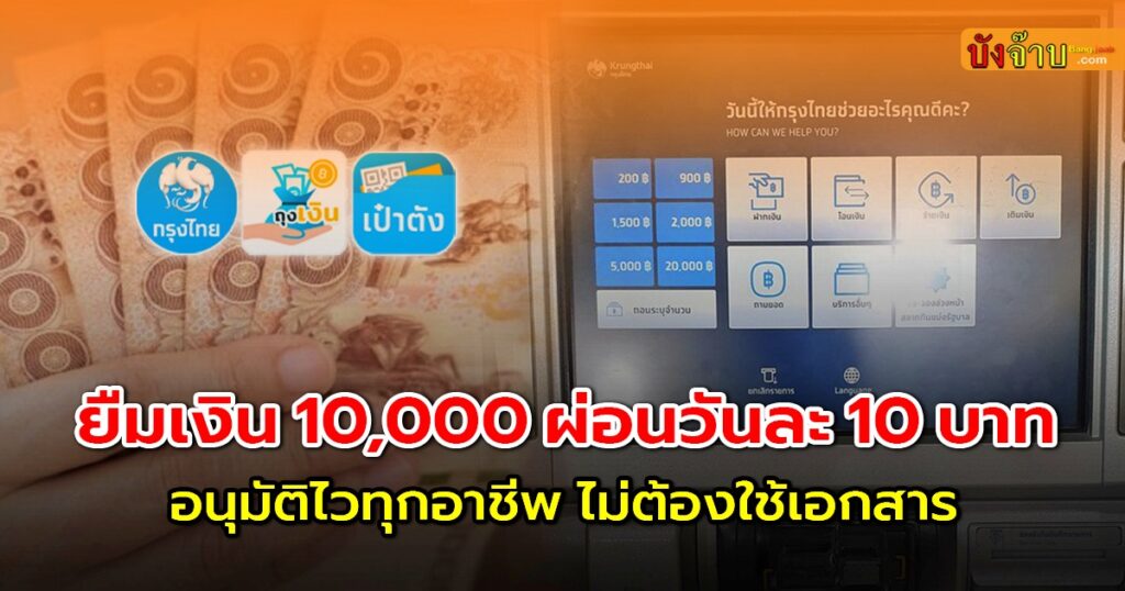 อีกหนึ่งบริการสินเชื่อเงินกู้ จากธนาคารกรุงไทย ที่ Bang jaab.com ไม่พลาดจะนำมาแนะนำ สำหรับ สินเชื่อสิบหมื่น ที่มีวงเงินกู้ยืม 10,000 สูงสุด ที่ 500,000 บาทต่อราย ไม่ต้องค้ำประกันใดๆ อนุมัติไวใน 5 นาที เพียงแค่เป็นผู้ใช้ แอปถุงเงิน กู้ได้ทุกอาชีพ