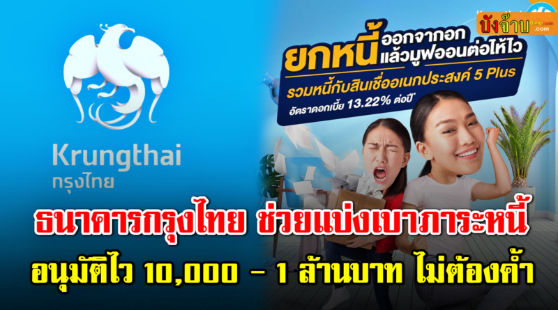 สินเชื่อกรุงไทย 5 plus ช่วยรวมหนี้ อนุมัติสูงสุด 1 ล้านไม่ต้องค้ำ