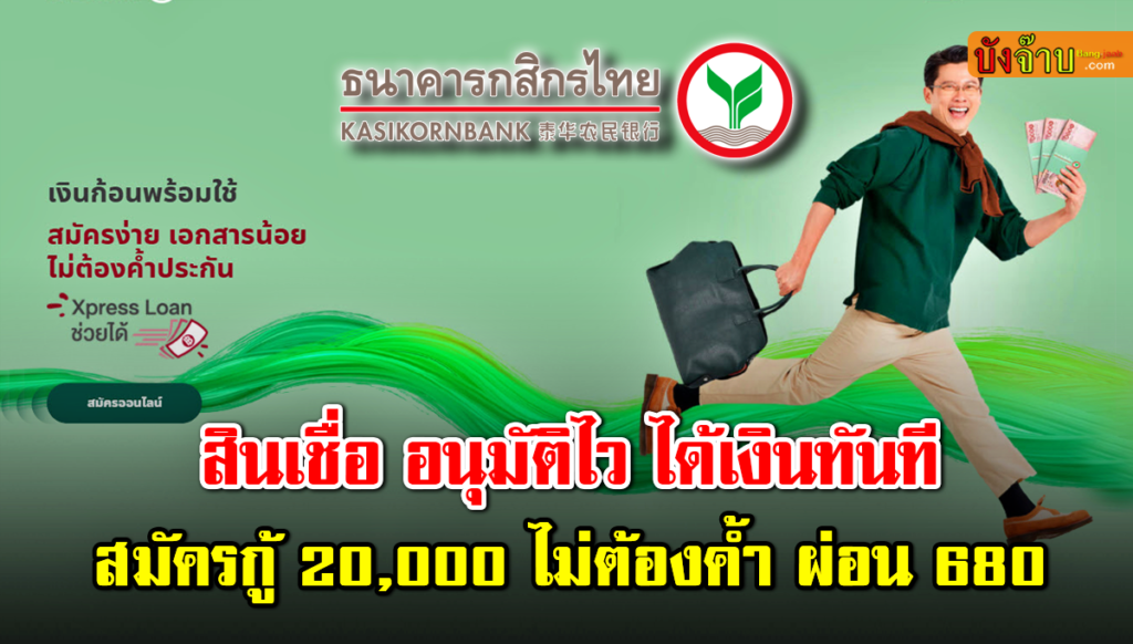 สินเชื่อกสิกรไทย อนุมัติเงินไว ยืม 20,000 ไม่ต้องค้ำ สมัครได้ทุกอาชีพ