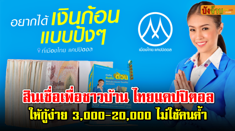สินเชื่อด่วนกู้ง่าย 3,000-20,000 เมืองไทยแคปปิตอล ไม่ใช้คนค้ำรับเงินทันที