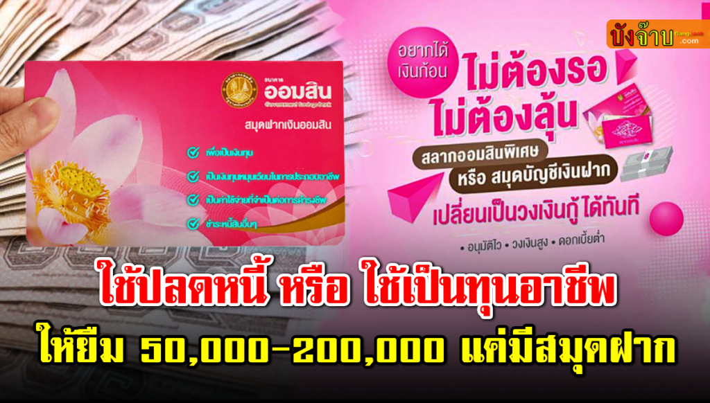 สินเชื่อธ.ออมสิน แค่มีสมุดฝาก ให้ยืม 50,000-200,000 ไม่ต้องค้ำ