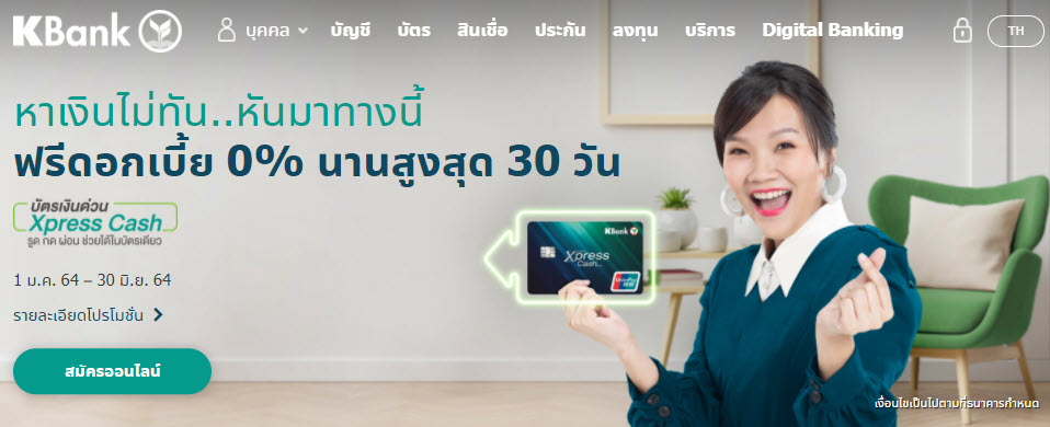 ขั้นตอนสมัคร บัตรเงินด่วนกสิกรไทย Xpress Cash คลิกที่นี่