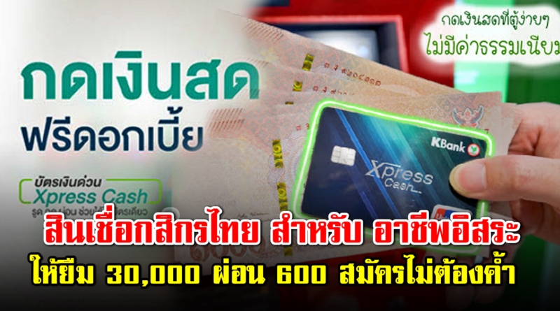 สินเชื่อสำหรับอาชีพอิสระ กสิกรไทย ให้ยืม 30,000 ผ่อนแค่ 600 ไม่ต้องค้ำ
