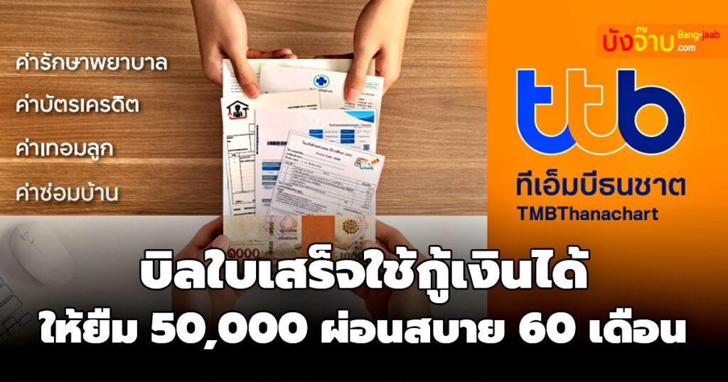 วันนี้ Bang jaab.com จะมาแนะนำ สินเชื่อเงินกู้ เงินกู้อนุมัติไว เงินกู้ถูกกฏหมาย สำหรับ สินเชื่อบุคคล ทีทีบี แคชทูแคร์ จาก ธนาคารทีเอ็มบีธนชาต หรือ TTB ธนาคารทหารไทยธนชาต มีวงเงินกู้ยืม ตั้งแต่ 15,000 สูงสุด 1.5 ล้านบาท ผ่อนได้สบายๆ นานสูงสุด 60 เดือน