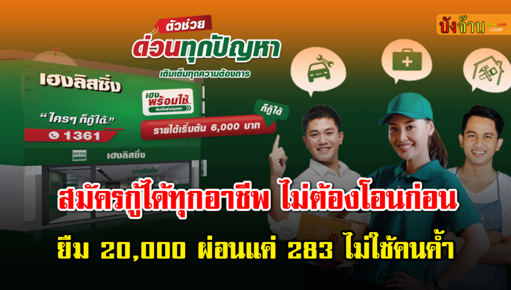 วันนี้ทาง Bang jaab.com มีบริการสินเชื่อกู้ง่าย ได้เงินก้อน พร้อมใช้ทันใจมาแนะนำกัน สำหรับ สินเชื่อส่วนบุคคลเฮงพร้อมใช้ บริการสินเชื่อจาก เฮงลิสซิ่ง ตัวช่วยด่วนทุกปัญหา เติมเต็มทุกความต้องการได้เงินก้อน ผ่อนสบาย ไม่ต้องมีคนค้ำ