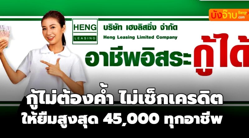 “สินเชื่อ”เฮงลิสซิ่ง ไม่เช็คบูโร ให้ยืมสูงสุด 45,000 อาชีพอิสระ ไม่ต้องค้ำ