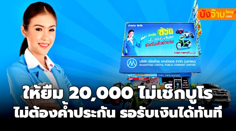 สินเชื่อไม่เช็กบูโร เมืองไทยแคปปิตอล ให้ยืม 20,000 ไม่ต้องค้ำ อนุมัติใน 1 วัน