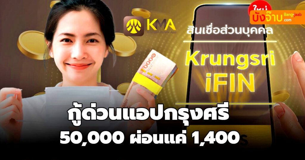วันนี้ Bang jaab.com จะมาแนะนำ สินเชื่อเงินกู้ กู้เงินด่วนออนไลน์ แอปเงินกู้ถูกกฏหมาย สำหรับ สินเชื่อ Krungsri iFIN ให้วงเงินกู้ยืม สูงสุด 2 ล้านบาท หรือไม่เกิน 5 เท่าของรายได้ โดยไม่ต้องมีหลักทรัพย์หรือบุลคลค้ำประกัน สมัครง่าย รู้ผลไวภายใน 1 วัน ผ่านทางแอป KMA