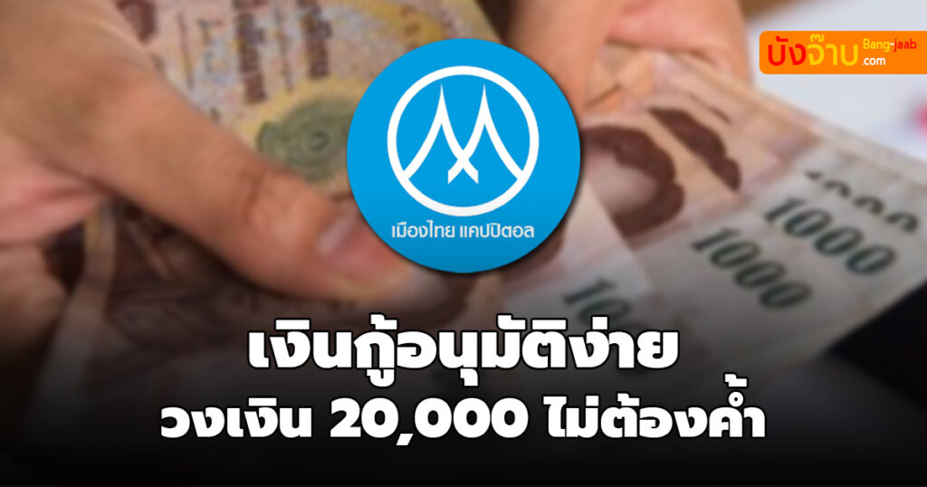 วันนี้ Bang jaab.com จะขอแนะนำ สินเชื่อเงินกู้ เงินกู้ด่วน เงินกู้ถูกหมาย สำหรับ สินเชื่อส่วนบุลคล จาก เมืองไทยแคปปิตอล มีวงเงินกู้ยืม สูงสุดที่ 20,000 บาท ไม่ต้องใช้คนค้ำประกัน อนุมัติเงินทันใจใน 1 วัน