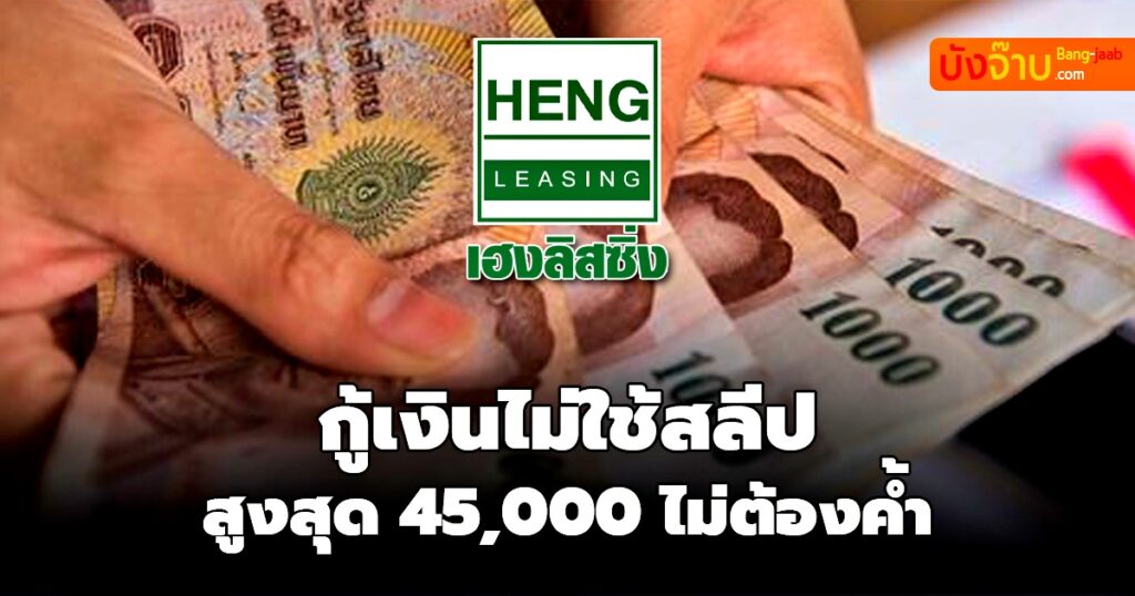 วันนี้ Bang jaab.com จะมาแนะนำ สินเชื่อเงินกู้ กู้เงินด่วน เงินกู้ถูกกฏหมาย สำหำรับ สินเชื่อส่วนบุคคลเฮงพร้อมใช้ จาก บริษัท เฮงลิสซิ่ง ให้วงเงินกู้ยืม สูงสุดที่ 45,000 บาท สมัครง่าย ไม่ใช้บุลคลหรือหลักทรัพย์ค้ำประกันใดๆ