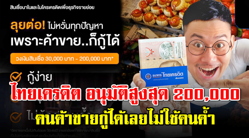 ไทยเครดิต ให้พ่อค้าแม่ค้ากู้ฉุกเฉินไม่ใช้คนค้ำ อนุมัติสูงสุด 200,000