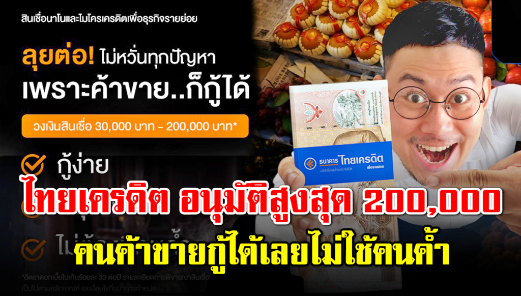 ธนาคารไทยเครดิต เพื่อรายย่อย จำกัด ได้เปิดบริาร สินเชื่อเงินให้กู้ยืม นาโนและไมโครเครดิตเพื่อธุรกิจรายย่อย คุยง่าย ผ่อนสบาย ได้เงินเร็ว สนับสนุนเงินทุนสูงสุด 200,000 บาท ไม่ต้องใช้หลักทรัพย์หรือบุคคลค้ำประกัน ให้พ่อค้าแม่ค้าเข้าถึงเงินทุนในระบบได้อย่างปลอดภัย