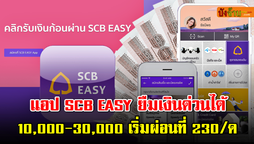 มาแล้วจ้า วันนี้ Bang jaab.com มีบริการ สินเชื่อเงินด่วน มาแนะนำกัน สำหรับ บริการ สินเชื่อเงินให้กู้ยืม จากธนาคารไทยพาณิชย์ ที่ชื่อว่า สินเชื่อบุคคล Speedy Loan บริการ สินเชื่อเงินด่วน รูปแบบออนไลน์ ที่มีวงเงินกู้ยืม เริ่มต้นที่ 10,000 บาท สูงสุดที่ 5,000,000 บาท สามารถสมัครขอ กู้ยืมเงิย ได้ง่ายและรวดเร็ว โดยไม่ต้องเดินทางไปที่ธนาคาร เพียงมีแอปของธนาคารไทยพาณิช Scb Easy