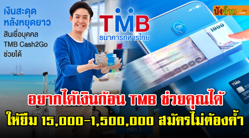 อีกหนึ่งบริการ สินเชื่อเงินให้กู้ยืม ดีๆ ที่วันทาง Bang jaab.com จะมาแนะนำกัน สำหรับ สินเชื่อบุคคล CASH2GO(แคชทูโก) บริการ สินเชื่อเงินกู้ยืม จากทาง ธนาคารทหารไทย(TMB) ที่เปิดให้ กู้ยืมเงิน ได้ตั้งแต่ 15,000-1,500,000 บาท หรือสูงสุด 5 เท่าของรายได้ประจำ ไม่ใช้หลักทรัพย์ ไม่ใช้บุลคลค้ำประกัน
